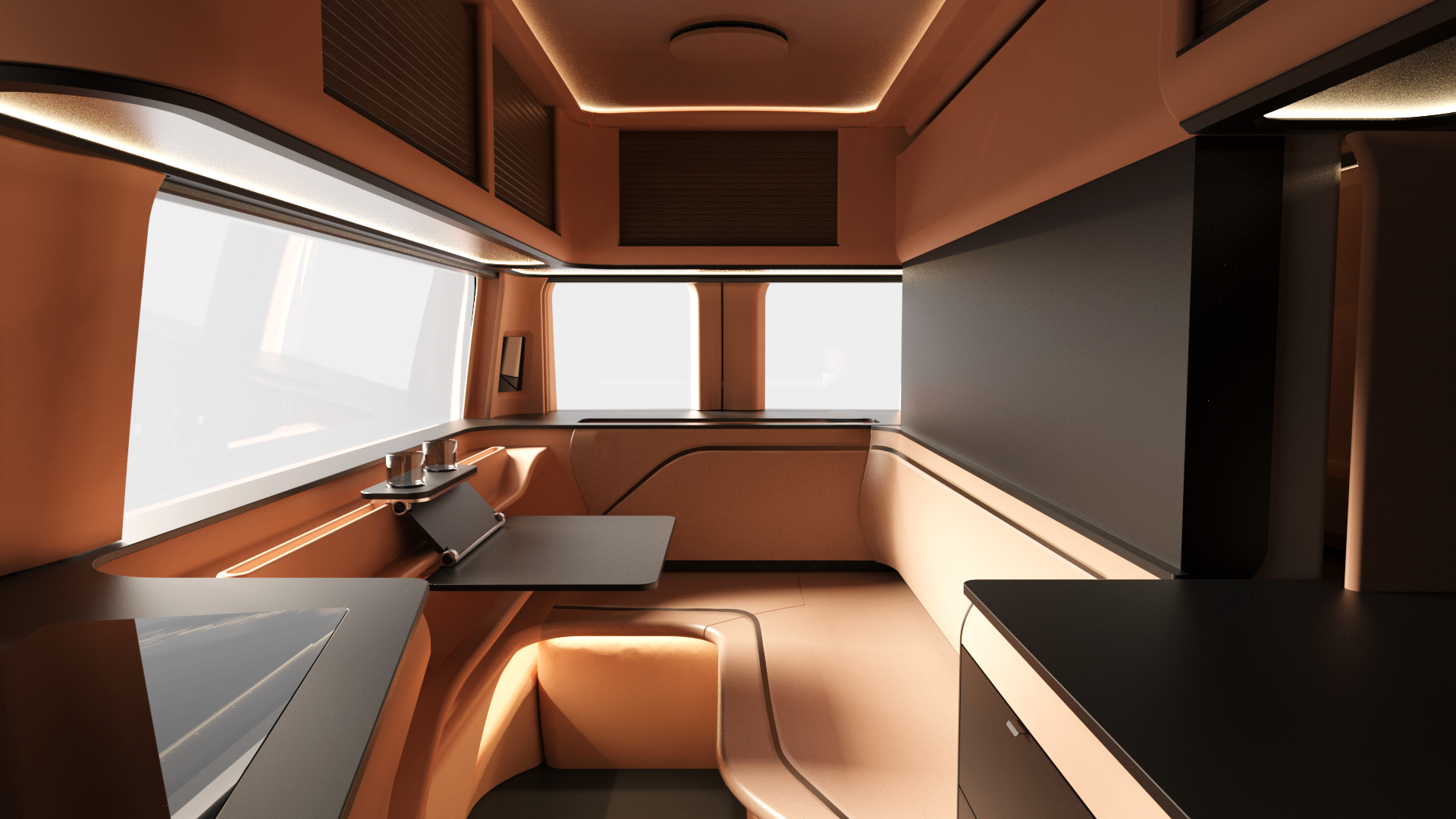 Organic shapes are optimized for strength, more useable space, and beauty. It’s an interior that feels like a cocoon.