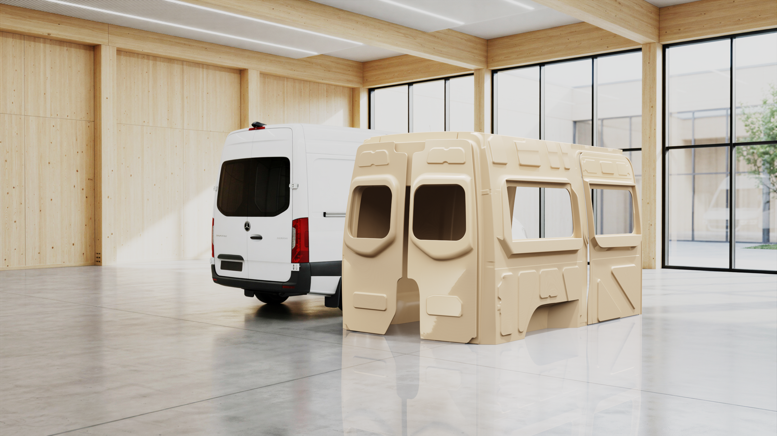 3D printed components host a wide range of technical geometries including air ducts, insulation, electrical runs, lighting and mounting systems.